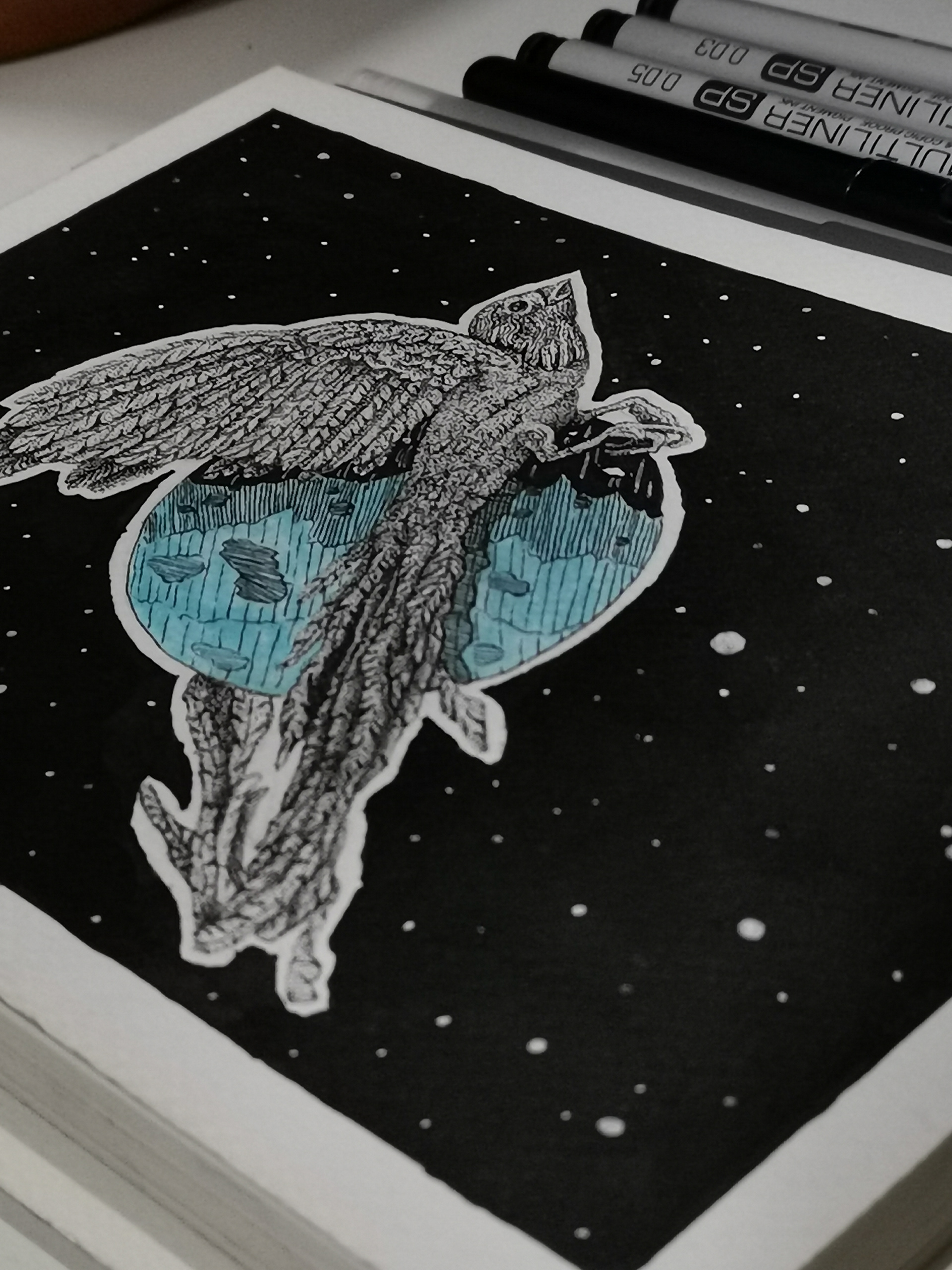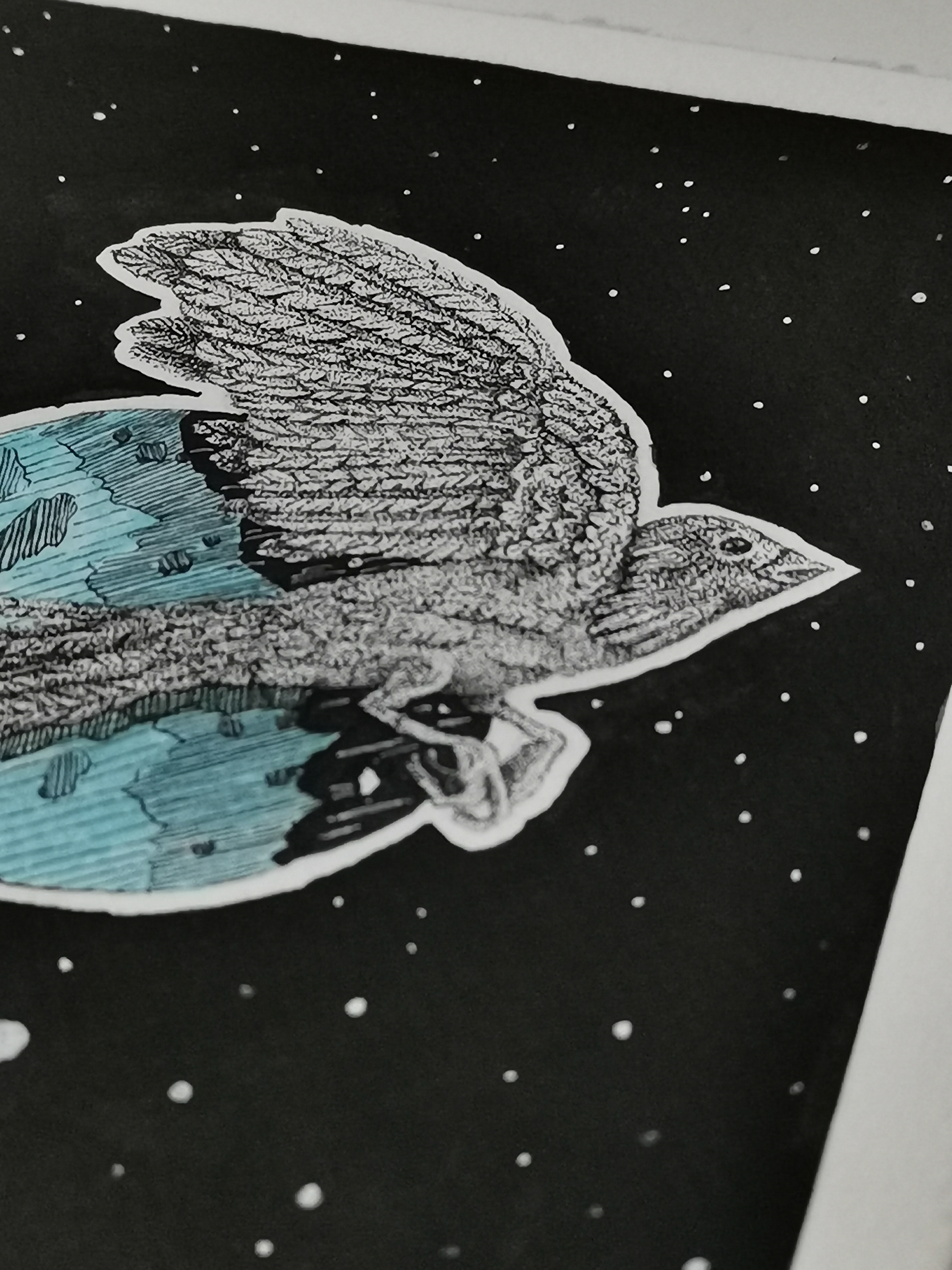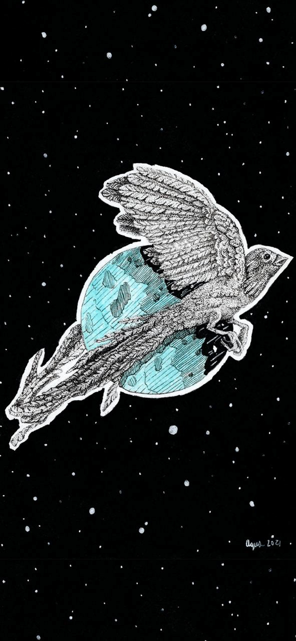 LONG TAILED BIRD ORBITING A PLANET
